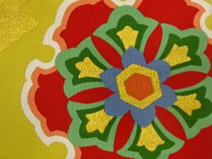 JAPANESE KIMONO / ANTIQUE FUKURO OBI / SILK / TSUZURE / WOVEN FLORAL CREST