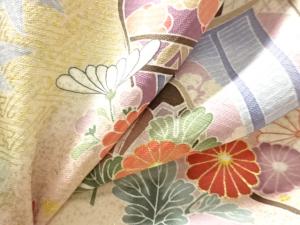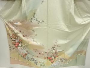 JAPANESE KIMONO / HITOE HOMONGI / SILK / EMBROIDERY / HAND PAINTED YUZEN / CARRIAGE & FLOWERS & BIRDS