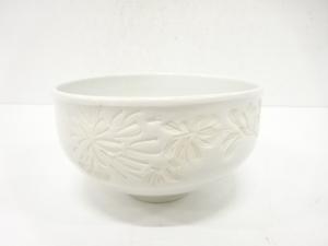 JAPANESE TEA CEREMONY / IZUSHI WARE TEA BOWL CHAWAN / WHITE PORCELAIN / ARTISAN WORK