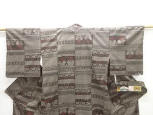横段に草花模様織り出し本場泥大島紬着物(5マルキ)