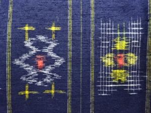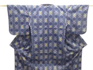 縞に花模様織り出し手織り紬着物