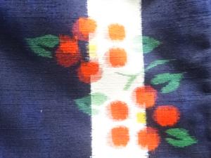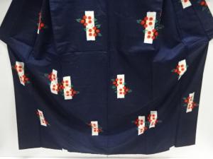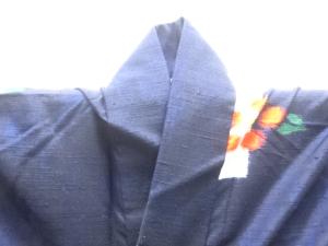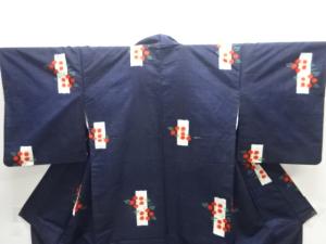 越後伝承紬 短冊に花模様織り出し着物