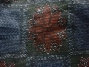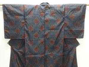 洗練された落ち着きのある色合いで、生地そのものは柔らかく、しわになりにくいと言われている。大島紬の特徴とも言える、織締めと呼ばれる技法で藍を用いて染められた糸を使用している。
