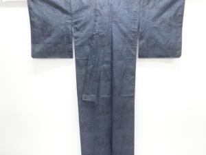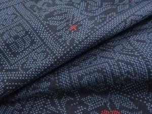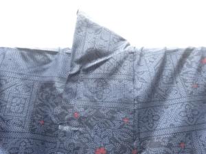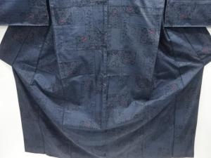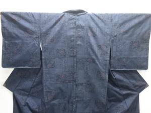 幾何学に花更紗模様織り出し本場泥大島紬着物(5マルキ)