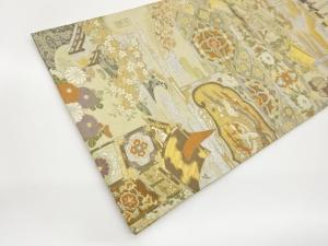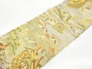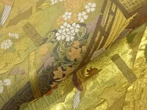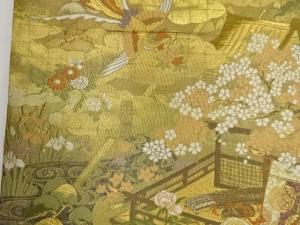 日本名所に鳳凰・御所車・花々模様織出し袋帯
