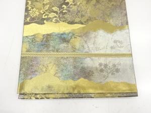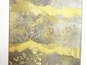 引箔 山並に菊・唐草模様織り出し 袋帯