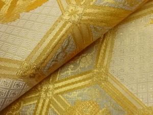 佐賀錦亀甲に鶴・花々模様織出し袋帯