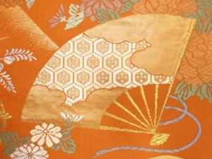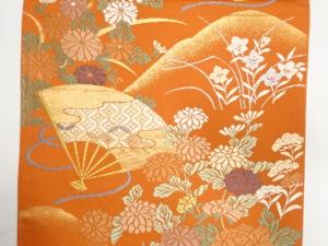 遠山に扇・菊・秋草模様織り出し 袋帯