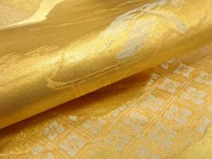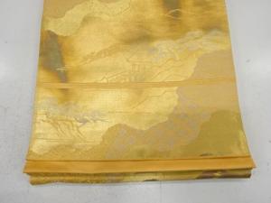 引箔 道長取りに寺院風景模様織り出し 袋帯