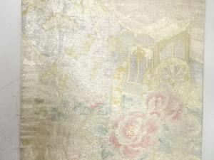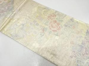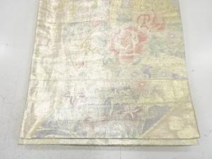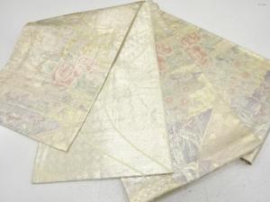 佐賀錦 巻物に御所車・草花模様織り出し 全通袋帯