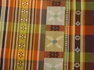 変わり格子に花葉・幾何学模様織出し名古屋帯