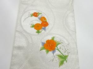 リサイクル 丸文に花々模様刺繍名古屋帯