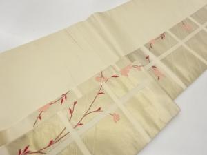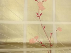 格子に桜・斜線模様織出し名古屋帯