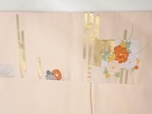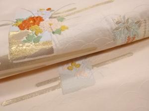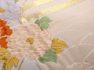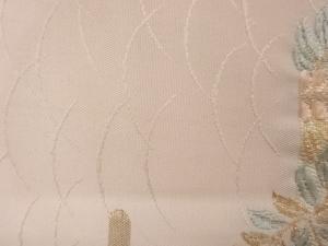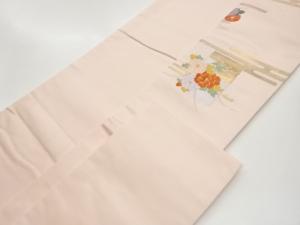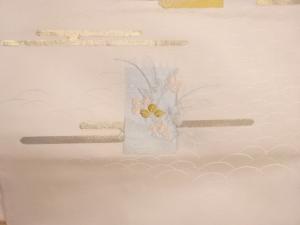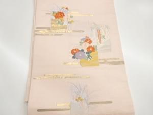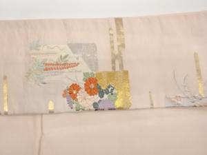 ヱ霞に芝・短冊・草花模様織出し名古屋帯