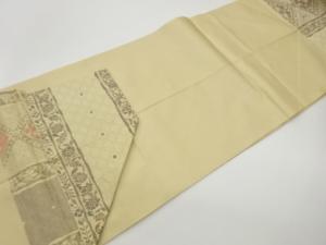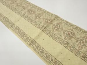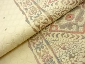 抽象花菱に花唐草模様織出し名古屋帯