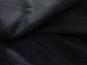 洗練された落ち着きのある色合いで、生地そのものは柔らかく、しわになりにくいと言われている。大島紬の特徴とも言える、織締めと呼ばれる技法で藍を用いて染められた糸を使用している。
