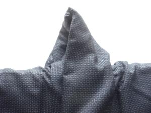 洗練された落ち着きのある色合いで、生地そのものは柔らかく、しわになりにくいと言われている。大島紬の特徴とも言える、織締めと呼ばれる技法で藍を用いて染められた糸を使用している。