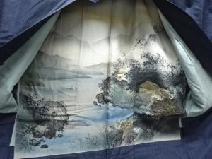 乱れ格子織出し手織り紬男物着物アンサンブル