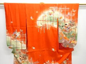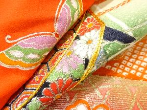 アンティーク 糸巻きに桜・蝶模様刺繍着物(重ね衿付き)