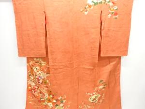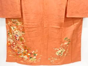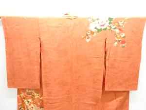 アンティーク 紋錦紗鼓に草花模様刺繍一ツ紋着物