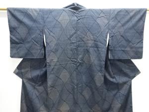 アンティーク よろけ格子模様織り出し手織り紬着物