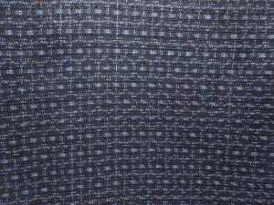 洗練された落ち着きのある色合いで、生地そのものは柔らかく、しわになりにくいと言われている。大島紬の特徴とも言える、織締めと呼ばれる技法で藍を用いて染められた糸を使用している。