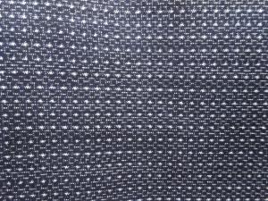 洗練された落ち着きのある色合いで、生地そのものは柔らかく、しわになりにくいと言われている。大島紬の特徴とも言える、織締めと呼ばれる技法で藍を用いて染められた糸を使用している。