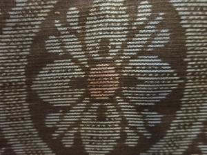 洗練された落ち着きのある色合いで、生地そのものは柔らかく、しわになりにくいと言われている。大島紬の特徴とも言える、織締めと呼ばれる技法で藍を用いて染められた糸を使用している。