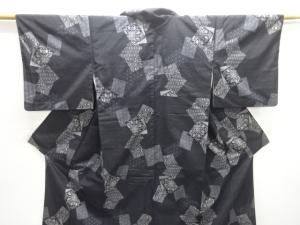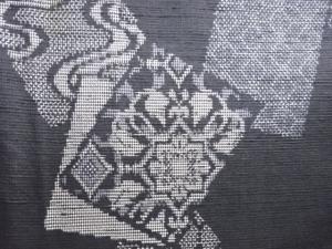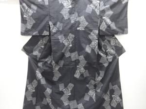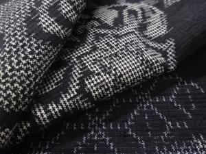 アンティーク 色紙に花古典柄織り出し手織り紬着物