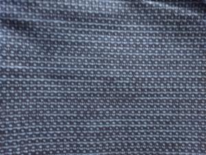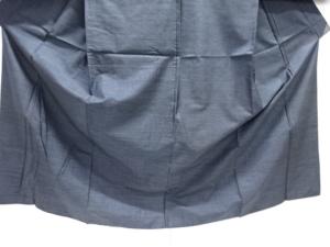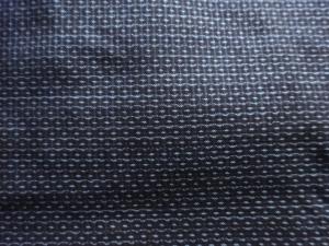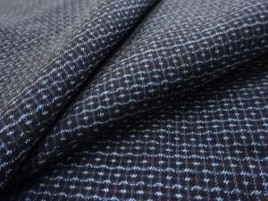 洗練された落ち着きのある色合いで、生地そのものは柔らかく、しわになりにくいと言われている。大島紬の特徴とも言える、織締めと呼ばれる技法で藍を用いて染められた糸を使用している。