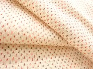 本塩沢は経糸緯糸共に生糸のお召し糸を用い、縮緬のようなシボを持ち、シャリ感があるのが特徴。