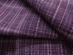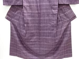 アンティーク 格子に抽象模様織り出し手織り紬着物