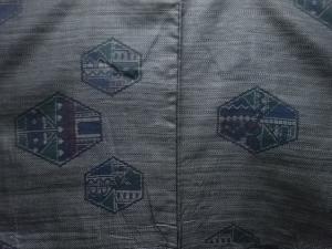 アンティーク 亀甲に抽象模様織出し本場泥大島紬着物