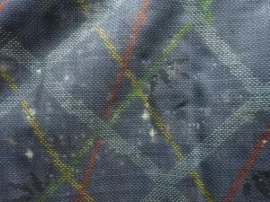 洗練された落ち着きのある色合いで、生地そのものは柔らかく、しわになりにくいと言われている。大島紬の特徴とも言える、織締めと呼ばれる技法で藍を用いて染められた糸を使用している。