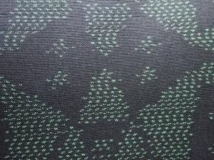 洗練された落ち着きのある色合いで、生地そのものは柔らかく、しわになりにくいと言われている。大島紬の特徴とも言える、織締めと呼ばれる技法で藍を用いて染められた糸を使用している。