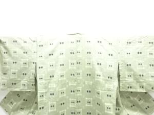アンティーク 枡に抽象花模様織り出し手織り紬単衣着物