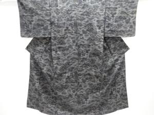 アンティーク 家屋模様織出し手織り真綿小千谷紬単衣着物