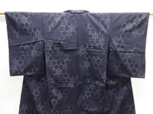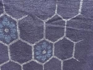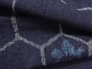 アンティーク 破れ亀甲に花模様織出し手織り紬単衣着物