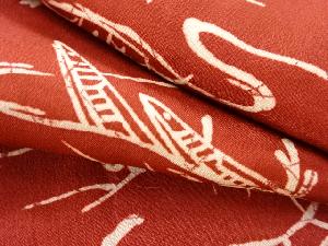 大正ロマン 流水に小舟・樹木模様着物