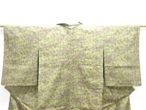 大正ロマン 枝花模様織出し手織り真綿小千谷紬単衣着物