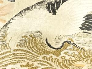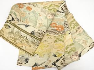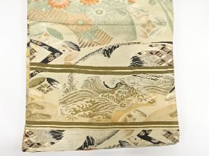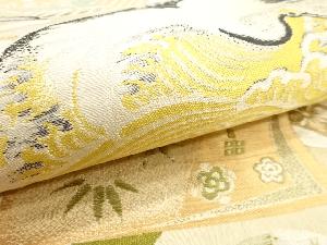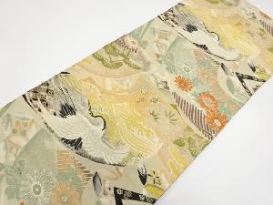 アンティーク 地紙に鶴・花・古典柄織り出し丸帯(材料)