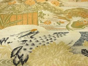 アンティーク 松鶴に菊模様織出し丸帯(材料)