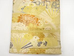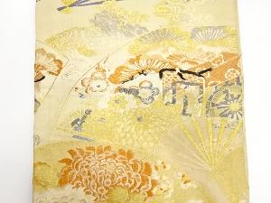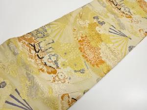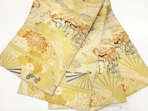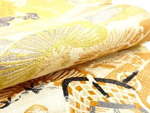 アンティーク 扇に御所車・松竹梅模様織り出し丸帯(材料)