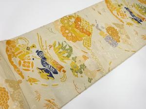 アンティーク 檜扇に宝尽くし・松・笹模様織り出し丸帯(材料)