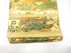 アンティーク 桧扇に宝船・笠松・菊模様織り出し丸帯(着用可)