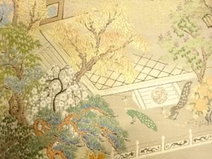 アンティーク 孔雀に松竹梅織り出し丸帯(着用可)