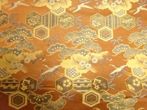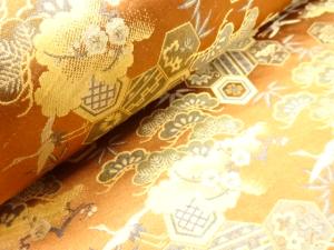 アンティーク 松竹梅に鶴・亀甲模様織り出し丸帯(着用可)