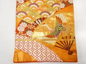 アンティーク 扇に鶴・花・古典柄織り出し袋帯(材料)