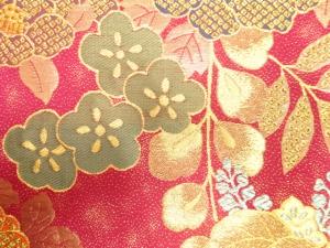 藤に牡丹・菊模様織り出し 振袖用袋帯