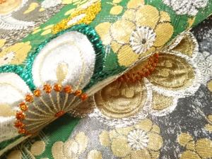 梅に藤模様織り出し 全通振袖用袋帯